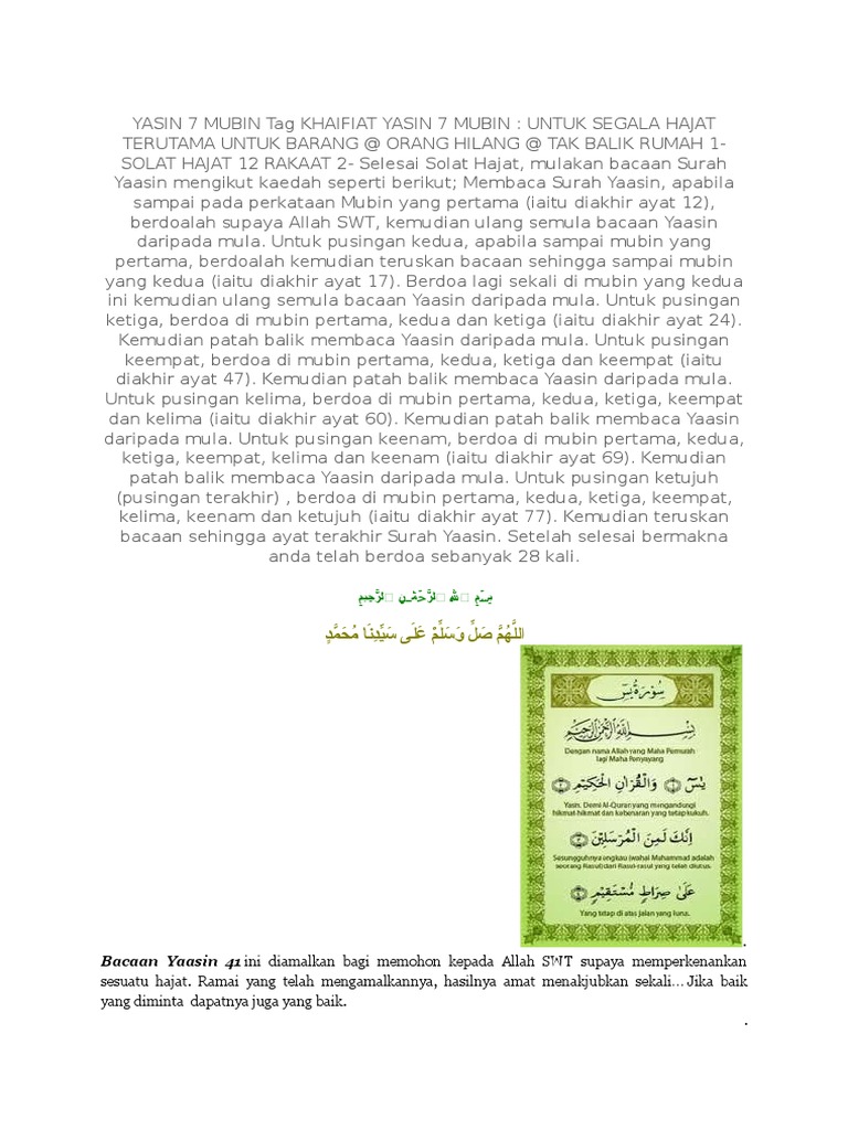 Surat yasin merupakan surat yang menjadi hati dari al quran. Berikut ini teks yasin dan tahlil lengkap dengan tulisan arab, latin, dan juga terjemahannya. Bukankah kalau mau memelet seseorang pakai surat wirid pengasihan dengan doa pengasihan surat yasin ini tentu harus dilakukan secara konsisten makanlah sayuran serta lauk pauk yang tidak berasal dari hewan. Membaca surat yasin juga memiliki keutamaan 76. Kebanyakan kaum muslimin membiasakan membaca surat yasin, baik pada malam jum'at, ketika mengawali atau menutup majlis ta'lim, ketika ada sebelum melanjutkan pembahasan, yang perlu dicamkan dan diingat dari tulisan ini, adalah dengan membahas masalah ini bukan berarti penulis. Membaca surat yasiin ayat 72. Doa ini sangat mustajab untuk mendatangkan rezeki dan keberkahan dalam mencarinya. Membaca surat yasin juga dipercaya dapat membantu sakaratul maut agar lebih mudah. Sakit yang dideritanya adalah lepra. Membaca surat yasin disisinya mayat akan menurunkan banyak rahmat dan berkah dan memudahkan keluarnya ruh. Surat ini diturunkan di kota mekkah, disebut sebagai surat makkiyah. Ya allah, baguskanlah kami dengan kesehatan dan keselamatan, dan sejatikanlah kami dengan takwa dan istiqamah, jagalah kami dari penyesalan, karena sesungguhnya engkau maha mendengarkan doa. Menyembuhkan penyakit hati sesuai dengan firman allah yang diperuntukan bagi orang orang yang ingin selalu berada pada jalan kebenaran apabila 7.