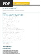 Membaca surat yasin dapat menyembuhkan penyakit hati seperti iri, dengki, benci, menggunjing keburukan orang lain ,menyebarkan fitnah dan lain lain sehingga hidupnya selalu berada dijalan yang benar. Menyembuhkan penyakit hati sesuai dengan firman allah yang diperuntukan bagi orang orang yang ingin selalu berada pada jalan kebenaran apabila 7. Apabila hamba hambaku bertanya tentang aku maka jawablah. Membaca surat yasin juga dipercaya dapat membantu sakaratul maut agar lebih mudah. Sakit yang dideritanya adalah lepra.