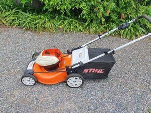 Stihl battery lawn mower NEAR NEW | Lawn Mowers | Gumtree ... from i.ebayimg.com The new rma 510 v is stihl's first battery powered lawn mower in the ap battery series. Just charge the battery, adjust your mowing height, and push the button to start your mower. Stihl rma 510 v review: The stihl rma 510 v is built in a really clever way, where all the motor is located nearly totally above the deck. Models with mono comfort handlebars offer a high degree of convenience, and make it simple to remove the grass collection box. The rma 510 battery powered lawn mower is made for the homeowner with a small to medium sized yard. It's so simple and easy to use; It also features an adjustable handlebar, grass catcher and larger rear wheels for rough terrain.