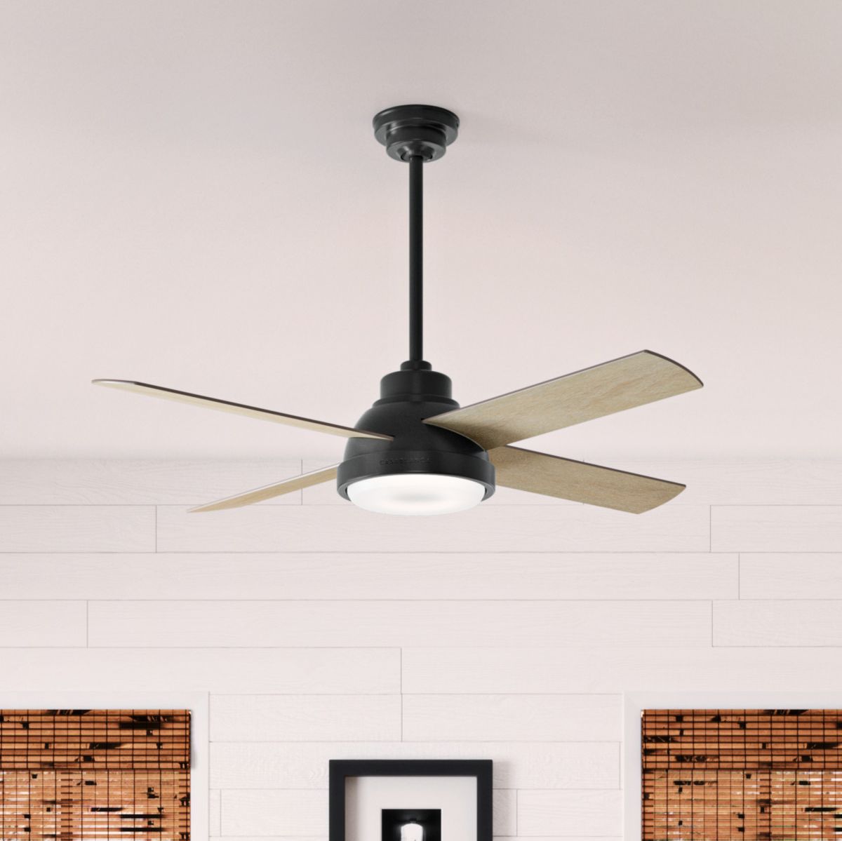 Breeze 44 Inch Mixed Colors Ceiling Fan Ø¥ÙØ§Ø±Ø§Øª from enarat.com Integrated led indoor white ceiling fan with light with remote control. A metal fixture cap is included for non light use installations. Hunter dempsey hunter 59245 hunter dempsey 44 in. The adjustable downrod allows for different ceiling heights. Operating with a whisperwind® motor, the four reversible blades move air efficiently without added noise for a comfortable environment. If the ceiling fan has an odd number of blades (3,5), measure the distance from the center of the fan to the tip of any of the blades. This tilghman collection ceiling fan features blades with a wicker pattern for a coastal feel. The dempsey outdoor 44 inch ceiling fan with led light by hunter fans makes a quiet statement as it cools spaces with a clean, modern look.